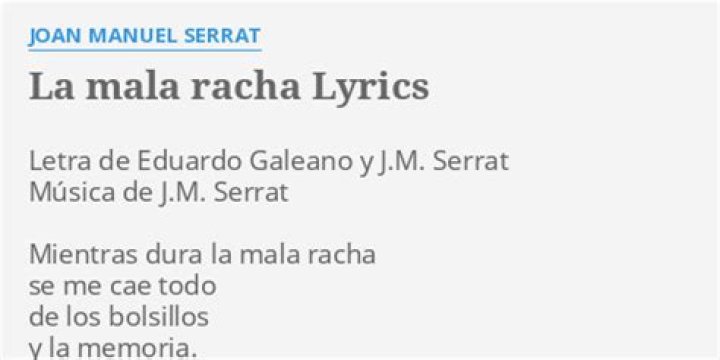 Music has always had the power to convey emotions and tell stories. One song that has captivated me with its poignant lyrics and beautiful melody is “La mala racha” by Joan Manuel Serrat. This song, written by Eduardo Galeano and Joan Manuel Serrat, and released as part of the album “Versos en la boca” in 2002, delves into the experience of going through a bad streak in life, where everything seems to go wrong.