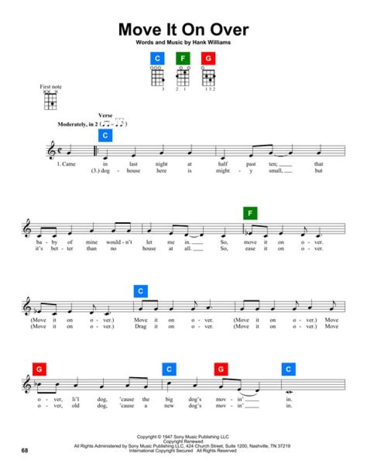 Some songs that are similar in theme and style to Move It on Over include “Your Cheatin’ Heart” by Hank Williams Sr., “Family Tradition” by Hank Williams Jr., and “Folsom Prison Blues” by Johnny Cash.