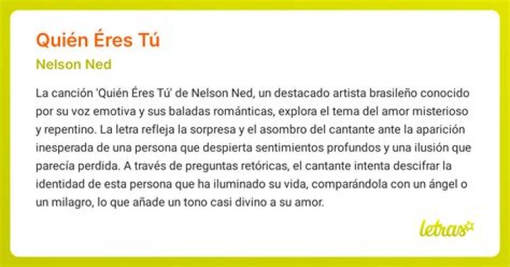 Quien Eres Tu, a beautiful song by Nelson Ned, holds a significant place in the hearts of many listeners. It resonates with its heartfelt lyrics and soulful melody, making it a timeless piece of music. This article will explore the meaning behind the song and provide some additional information about it.