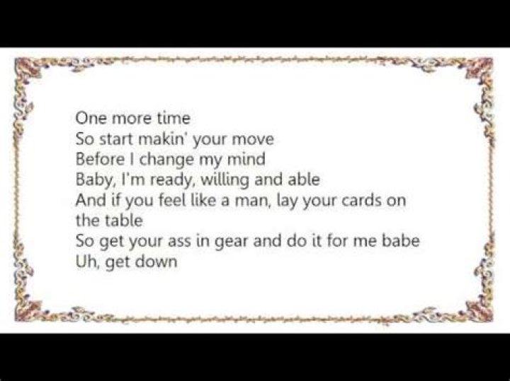In the chorus, Lita Ford declares that she is ready, willing, and able. She invites her partner to lay their cards on the table and prove themselves as a man. It is a call to action and a challenge for her lover to meet her expectations.