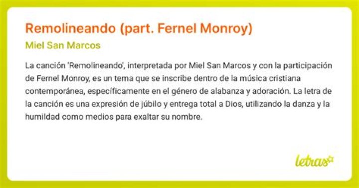 In conclusion, the song Remolineando by Fernel encapsulates the boundless joy and gratitude one can experience through worshiping God. Its uplifting lyrics serve as a call to celebrate and honor Jehovah through various forms of praise. Whether through dance, song, or a heartfelt prayer, Remolineando reminds us that our dedication to God can transform us and bring us closer to His presence. So next time you find yourself listening to this song, let its infectious rhythm and message inspire you to engage in your own personal celebration of faith.
