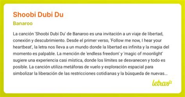 Whenever I listen to “Shoobi Dubi Du,” it takes me on a mini journey. The upbeat rhythm and infectious melody instantly uplift my mood and make me want to dance. The lyrics transport me to a place of possibility and remind me of the importance of staying positive and open-minded.