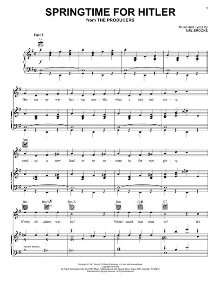 On the surface, “Springtime for Hitler” mocks the blind nationalism and fascist fervor that fueled the Third Reich. Exaggerated imagery of goose-stepping, triumphant pronouncements, and blind devotion to a singular leader create a caricature of Nazi ideology, exposing its inherent ridiculousness. The lyrics use overblown language and saccharine rhymes to paint a picture of a delusional society basking in a false spring while ignoring the impending winter of war and devastation.