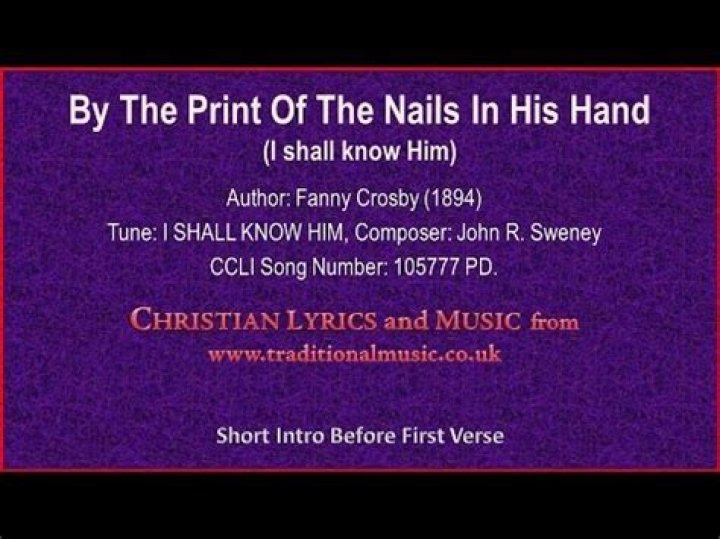 His smile will be the first to welcome me I shall know Him, I shall know Him And redeemed by His side I shall stand I shall know Him, I shall know Him By the print of the nails in His hand I shall know Him, I shall know Him And redeemed by His side I shall stand I shall know Him, I shall know Him By the print of the nails in His handMy Savior First of All - Bill & Gloria Gaither & Mary Tom ...