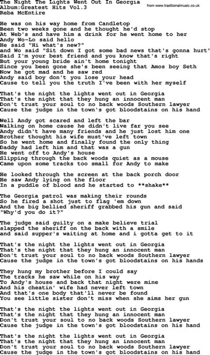 Check more the night the lights went out in georgia lyrics at Lyrics.camp