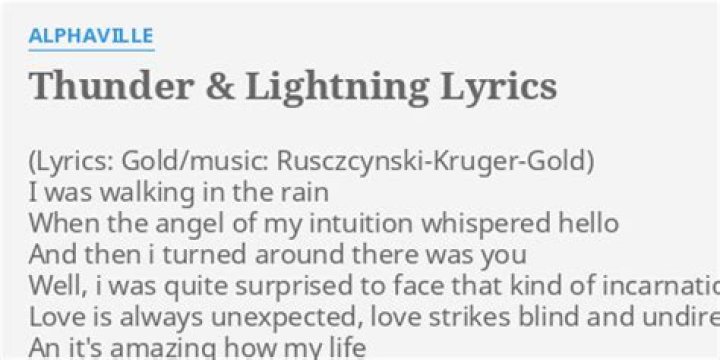 Get lyrics of Thunder, lightning song you love. List contains Thunder, lightning song lyrics of older one songs and hot new releases. Get known every word of your favorite song or start your own karaoke party tonight :-).