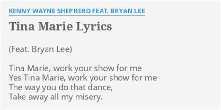 Get lyrics of Tina marie song you love. List contains Tina marie song lyrics of older one songs and hot new releases. Get known every word of your favorite song or start your own karaoke party tonight :-).