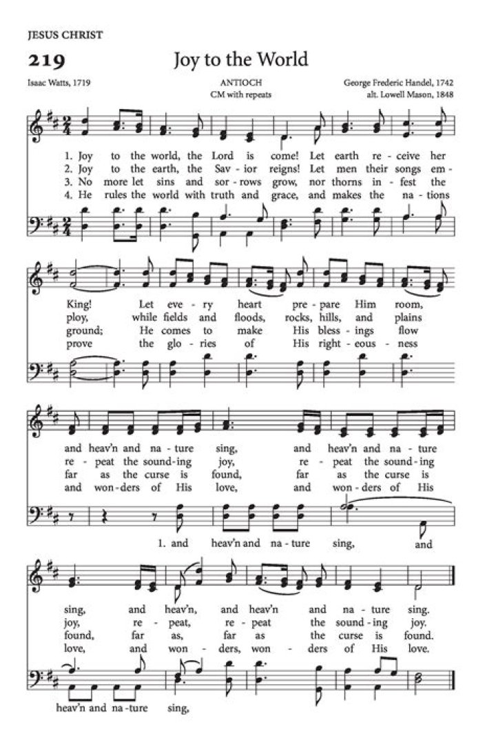 Joy to the World, the Lord is come! Let earth receive her King; Let every heart prepare Him room, And Heaven and nature sing, And Heaven and nature sing, And Heaven, and Heaven, and nature sing. Joy to the World, the Savior reigns! Let men their songs employ; While fields and floods, rocks, hills and plains.Joy to the World - Christmas Songs - song lyrics
