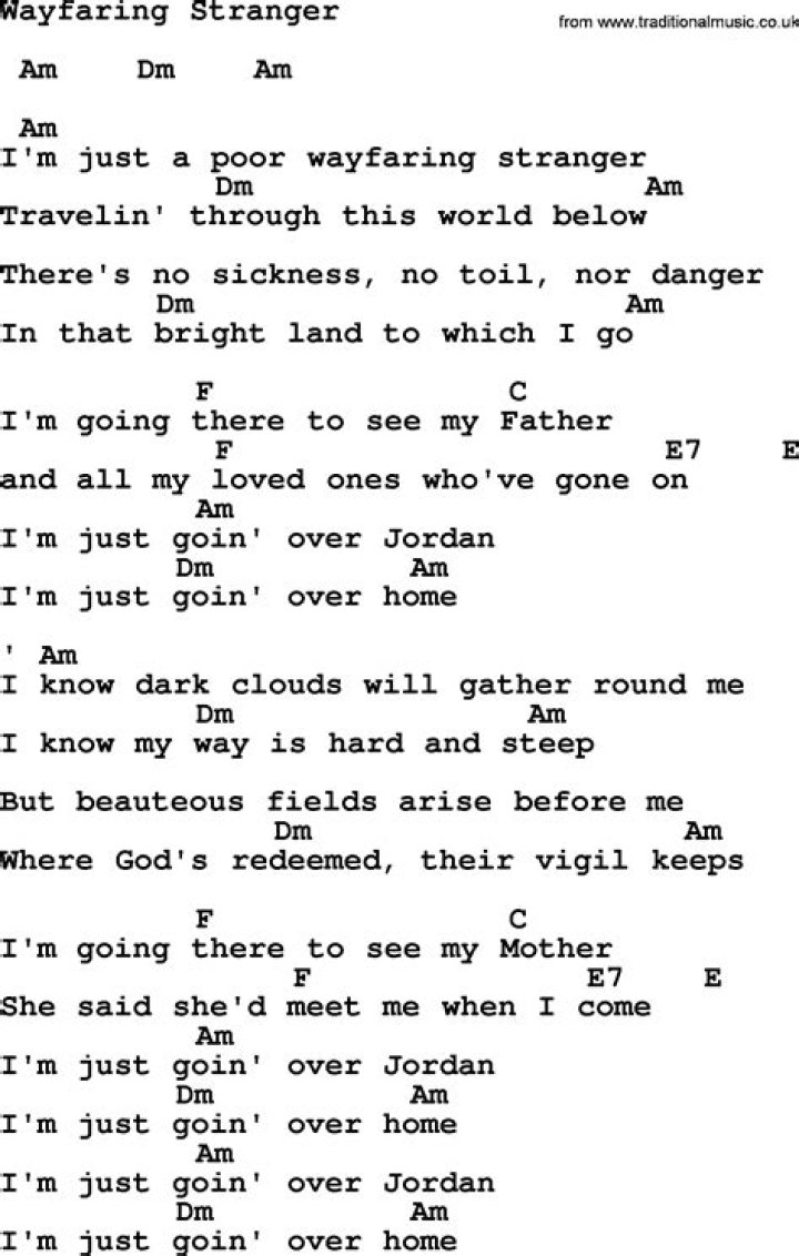 Get lyrics of Wayfaring stranger song you love. List contains Wayfaring stranger song lyrics of older one songs and hot new releases. Get known every word of your favorite song or start your own karaoke party tonight :-).