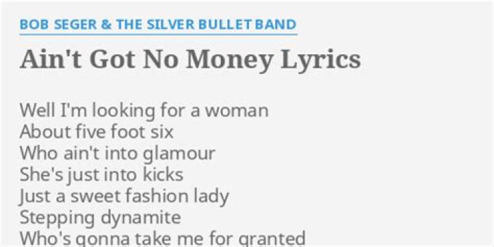 Well I ain't got no money. No fancy car Ain't got no excuses baby. Hanging at the bar. I don't owe you a thing baby I don't owe you a thing baby I don't owe you a thing I don't owe you a thing. Oh we ain't getting married I ain't buying you a diamond ring That's alright! Ain't got no credit. No fancy clothes Ain't got no excuses baby, But good ...Bob Seger & The Silver Bullet Band - Ain't Got No Money ...