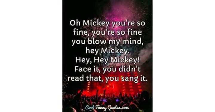Oh Mickey, you're so fine You're so fine, you blow my mind, hey Mickey, hey Mickey Oh Mickey, you're so fine You're so fine, you blow my mind, hey Mickey, hey Mickey Oh Mickey, you're so fine You're so fine, you blow my mind, hey Mickey, hey Mickey Oh Mickey, you're so fine You're so fine, you blow my mind, hey MickeyTONI BASIL - OH MICKEY LYRICS
